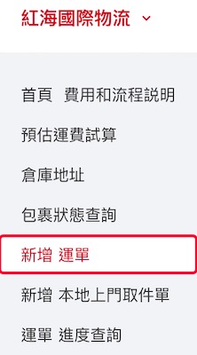 確認包裹抵達後,至官網首頁【紅海國際物流】 選擇 【新增 運單】